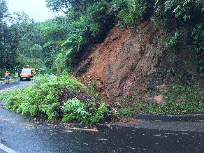 Plusieurs éboulements ont eu lieu, ce vendredi 28 septembre 2018 sur la RN3 à Plateau Boucher à Fonds Saint-Denis suite aux dernières pluies et au séisme de ce matin.