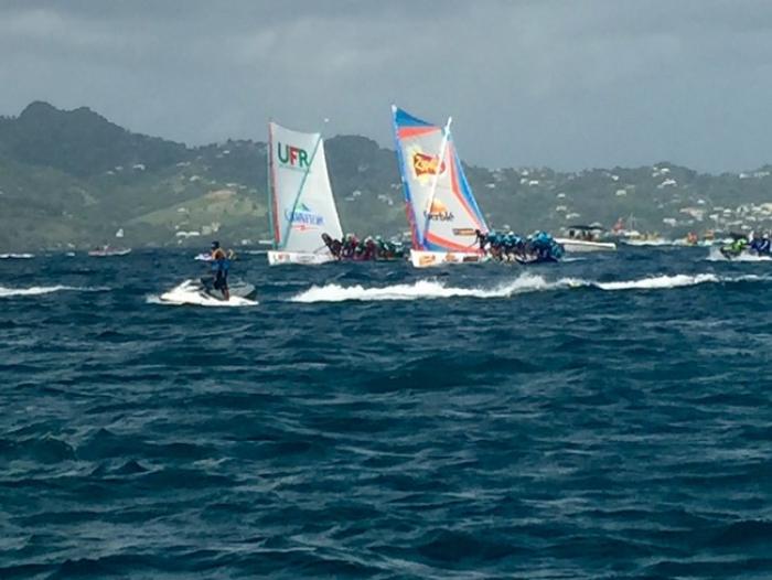 Dans la baie de Saint-Pierre, les yoles GFA/Cottrel et Rosette/Orange prennent le vent et remontent, elles fusent. Les deux premiers du classement ne changent pas. Mais Rosette/Orange a dépassé GFA/Cottrel.