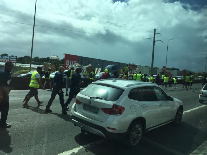 Les manifestants du mouvement des gilets jaunes en Martinique se trouvent sur l'autoroute. Ils se dirigent en direction de Fort-de-France en provoquant de gros embouteillages.