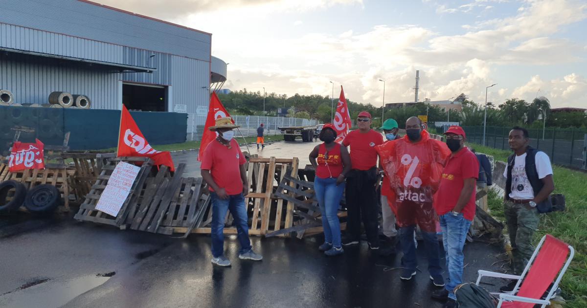 Aucune entrée ni aucune sortie du port de Fort de France ce lundi matin (15 novembre 2021). Le site de la Pointe des Grives est bloqué par des palettes et des pneus.