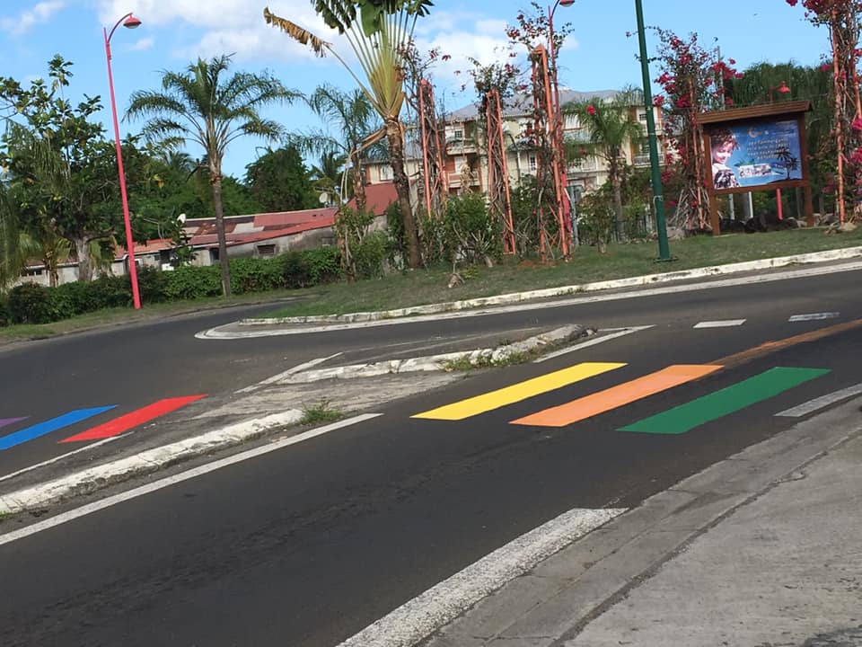 Cette année, pour marquer le coup, les organisateurs de la Gay Pride ont repeints un passage piéton à l'entrée de la commune aux couleurs du drapeaux arc en ciel.